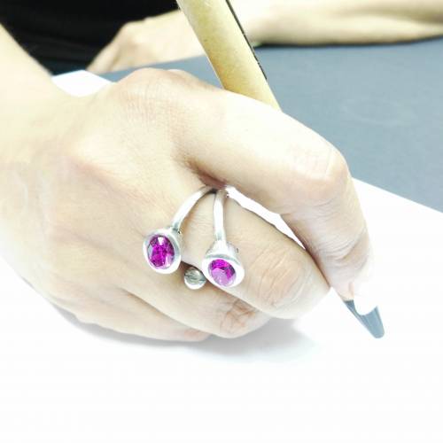 Anillo realizado en zamak, ajustable con adornos en Swarovski Elements.