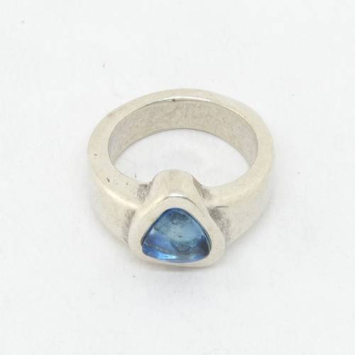 Anillo realizado en zamak con resina en color rojo o azul. Talla 18