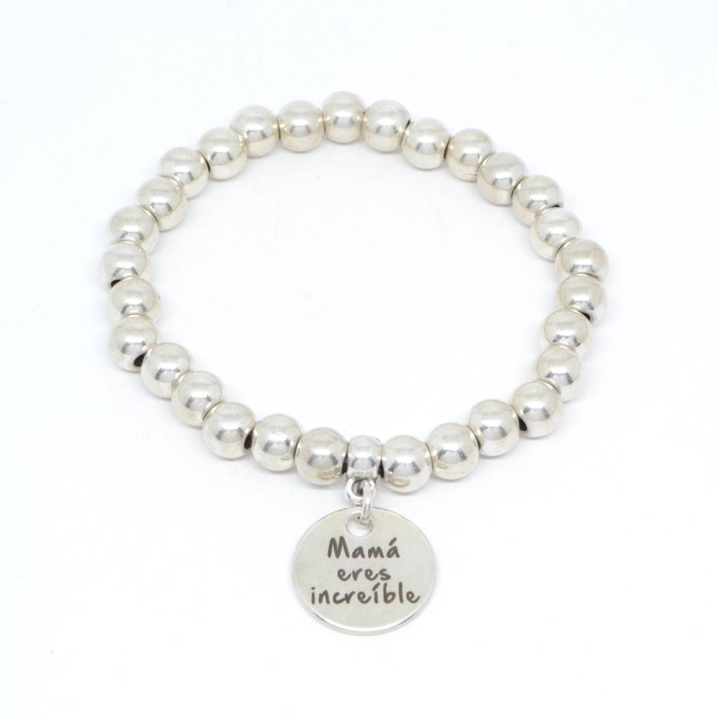 Pulsera elástica realizada en zamak con la frase Mama eres incrible, ideal como regalo para el día de la madre.