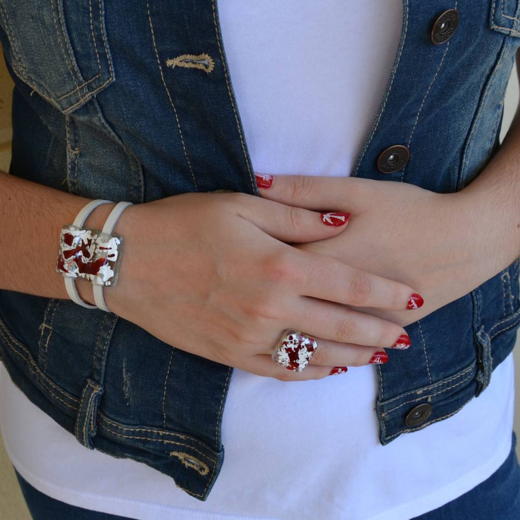 Extraordinario colgante realizado en cristal, antelina y zamak. Largo regulable. Pieza central 7x2.