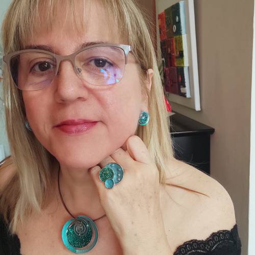 Siempre combinamos nuestras joyas de zamak con otros materiales para aportar color y calidad. Encontrarás muchas piezas decoradas con vidrio artesanal o con complementos de plata, como los enganches de los pendientes, para evitar reacciones alérgicas o alteraciones de cualquier tipo. Además, muchas de nuestras piezas están pensadas para combinar entre sí, por lo que en nuestro catálogo podrás comprar un precioso conjunto de complementos de bisutería artesanal para lucir en cualquier evento o en tu día a día.