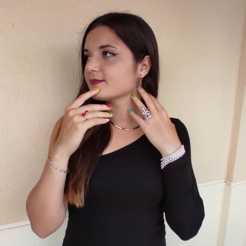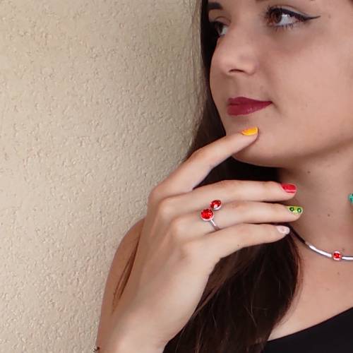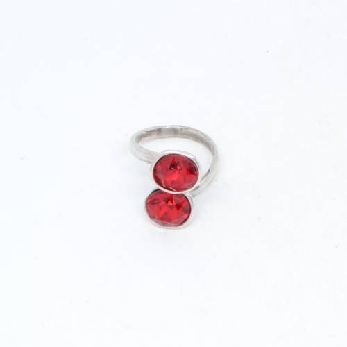 Delicado anillo ajustable hecho en zamak con dos cristales de Swarovski Elements.