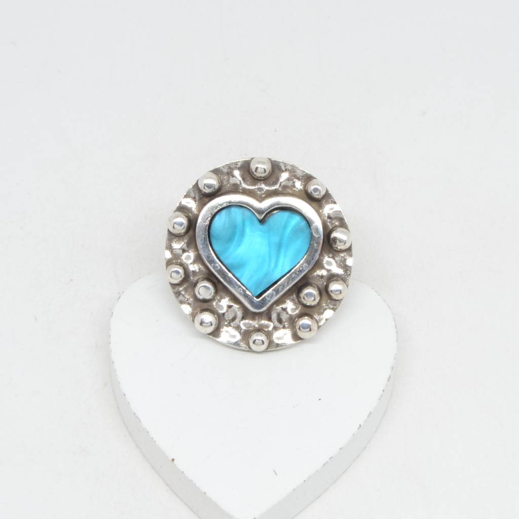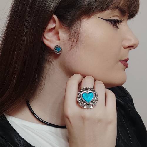 Anillo ajustable con la pieza principal con un corazón en azul turquesa el centro de todas las miradas.