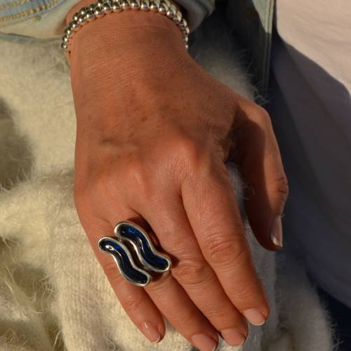 Original, llamativo y muy favorecedor anillo realizado en zamak con resinas inyectadas dandole color.