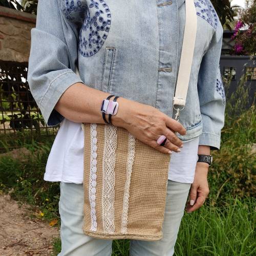 Preciosa pulsera en vidrio artesanal, complementada con cuero y cierre en zamak imantado para fácil colocación.