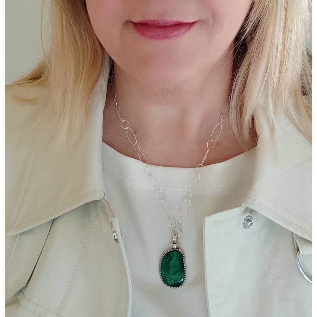 Colgante corto con cadena favorecedora y muy ligera, cierre de mosquetón con anillas de ajuste para ajustar el largo deseado.