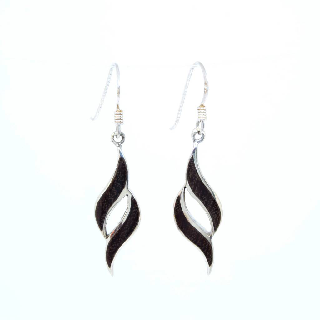 Pendientes en plata de ley con pieza simulando a madera.