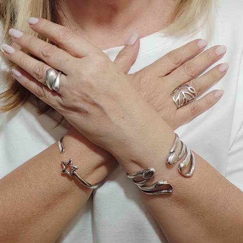 Pulsera realizada en zamak chapado en plata de 10 micras.
