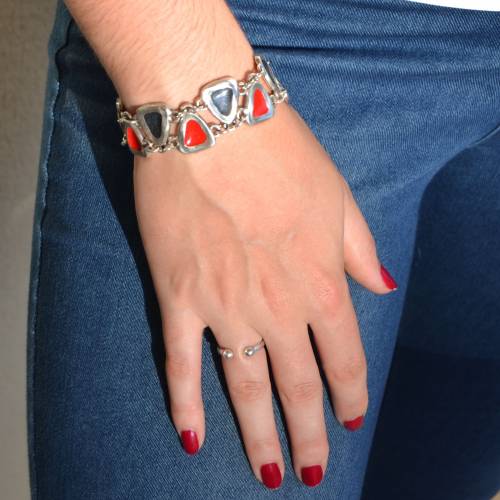 Magnifica pulsera en Zamak y esmaltes. Reversible.