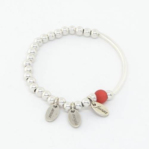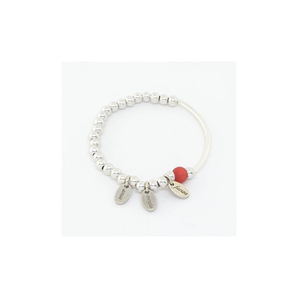 Pulsera elástica realizada en Zamak con tres palabras muy significativas Energía, Fuerza y Amor.