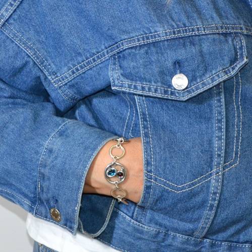Belleza es nuestra pulsera de la colección Anik montada con cristales de colores azul y morado.